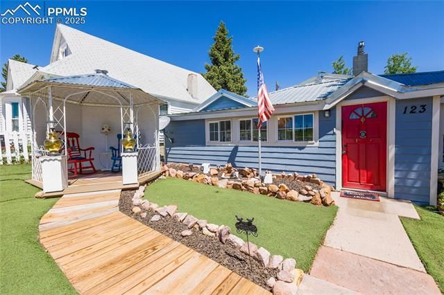 Welcome to this charming well-maintained home! Dual-zoned for both residential and commercial use, this 3-bedroom, 2-bath, 1,409 sq ft historic home offers exceptional flexibility—ideal for full-time living, a home business, investment property, or potential Airbnb/short-term rental use (buyer to verify local regulations). Located just two blocks from downtown Historic Cripple Creek, this well-maintained 1898 cabin blends classic mountain charm with thoughtful modern upgrades. Enjoy walkability to dining, shops, casinos, and year-round entertainment while still having a quiet retreat to come home to. Recent improvements include a 2018 metal roof, fresh interior/exterior paint, R-49 blown-in insulation, and an updated gas cooktop, oven, and dishwasher. Step outside to the inviting 10' × 15' redwood deck with wide 48" steps—perfect for relaxing or entertaining. The beautifully landscaped yard features a tranquil water feature and cozy gazebo, creating a peaceful outdoor sanctuary. A rare advantage: Massive 1,600 sq ft garage/workshop behind the home—ideal for hobbies, vehicles, tools, or commercial use. Endless possibilities in a prime, walkable Cripple Creek location.