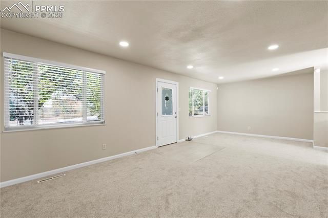 Beautifully renovated 4-bedroom, 2-bath ranch-style home in the highly desirable Vista Grande Terrace community. Nestled at the top of a hill, this move-in-ready home offers peace and privacy with stunning Pikes Peak views. Inside, you’ll find a bright, open-concept layout with new flooring, custom tile work in the kitchen and bathrooms, and a stylish tile backsplash that complements the modern finishes throughout. The kitchen features updated cabinetry and flows seamlessly into the dining and living areas — perfect for entertaining. Both bathrooms have been fully refreshed with sleek tile, new fixtures, and contemporary design. A brand-new roof, high-speed fiber optic internet, and a quiet, dark-sky neighborhood add to the home’s appeal. Outside, enjoy a landscaped yard with an automatic sprinkler system and an attached 2-car garage. Conveniently located near Fremont Park, shopping, and schools, this home perfectly combines comfort, quality, and mountain views.