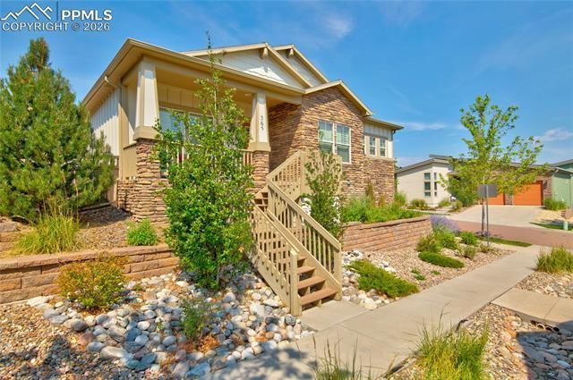 Enjoy refined single-level living in Gold Hill Mesa, one of Colorado Springs’ premier West Side communities, ideally located near Downtown Colorado Springs, Old Colorado City, Bear Creek Park, Red Rock Canyon Open Space & miles of hiking trails. This low-maintenance luxury home offers exceptional design, privacy & iconic Front Range views. Inside, natural light fills the open layout, enhanced by plantation shutters, rich hardwood floors & a striking stone fireplace anchoring the great room. The seamless flow from living to dining to kitchen is ideal for both entertaining & everyday living. The gourmet kitchen features granite countertops, premium appliances & skylight solar tubes that brighten the space throughout the day. The primary suite is a true retreat with vaulted ceilings & a spa-inspired ensuite offering raised double vanities, dual closets, a private water closet & an installed sauna that is included, creating a private in-home wellness experience. The finished basement adds flexibility with tall ceilings, a spacious recreation room ideal for a media room, home gym or guest space, plus abundant storage. One of the home’s most sought-after features is the rooftop deck above the garage, showcasing sweeping views of the Front Range mountains & city skyline. Perfect for sunset evenings, morning coffee or entertaining under Colorado skies. Gold Hill Mesa residents enjoy tree-lined streets, green spaces, a fitness center, community center & quick access to shopping, dining & cultural attractions. This is West Side living at its best, combining location, views & comfort in one exceptional Colorado Springs home.