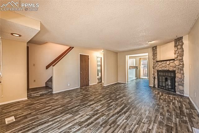 Charming 2 story townhome nestled in Cheyenne Autumn community located Southwest Colorado Springs. This beautifully maintained 1334 sq. ft., townhome offers the perfect blend of comfort, convenience, and stunning mountain views. Entry welcomes with a bright and airy main level featuring a spacious Living room anchored by a cozy wood-burning fireplace, perfect for Colorado winters. Kitchen boasts Butcher Block counters, glass tiled backsplash, updated stainless steel appliances, breakfast bar, separate dining room for hosting friends and family, and half bath completes the main level. Upper level offers 3 bedrooms, laundry facility, and main bath. Primary Suite serves as a true retreat with private entry, walk-in closet, vaulted ceiling, and en-suite. This property offers outdoor living with green spaces and mountain views, comfort, and efficiency with central air to stay cool in the summer and durable vinyl windows to keep warm during frigid winter temperatures. This property is Priced to Sell, Move-in-ready, low maintenance, and close to downtown Colorado Springs.