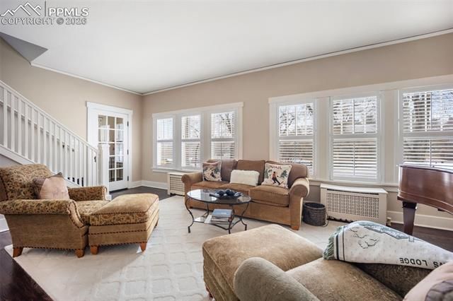 Elegant Estate Living · HISTORIC BROADMOOR · 4309sqf Welcome to one of the Broadmoor’s most exceptional homes — A Historic Craftsman where authentic character harmonizes with sophisticated modern updates. Nestled on a rare .59-acre lot, the property greets you with mature landscaping, lush perennial gardens, and an expansive flagstone patio — a truly private, park-like oasis perfect for both relaxed living and refined entertaining. Step inside to discover signature architectural details including soaring beamed ceilings, exposed brick accent walls, original hardware, barn doors, and thoughtfully curated light fixtures. Warm wood floors and designer finishes create an inviting flow from room to room, while sweeping mountain views infuse each level with natural beauty. The newly remodeled kitchen (2022) — a chef’s dream outfitted with a Thermador range, rich cabinetry, abundant workspace, and premium surfaces. The open layout transitions effortlessly to the adjacent family room, featuring custom built-ins, a gas-log fireplace, and French doors that invite indoor-outdoor living onto the flagstone terrace. An elegant formal dining room, perched near a dramatic picture window framing mountain views, offers a memorable backdrop for gatherings. The living room provides a second cozy focal point with its own gas-log fireplace and classic mantle — a perfect complement to the home’s historic soul. The main floor also includes three well-appointed bedrooms with generous closets and flexible layouts adaptable to home offices, gym or recreational space. Upstairs, the primary suite is a serene retreat, bathed in natural light and commanding treetop views. The suite’s luxury is enhanced by a newly constructed custom walk- in closet room(2022), marrying modern convenience with timeless appeal. Other Updates: Central A/C (2020) Roof replacement (2018), New Steam shower (2021), Professionally designed outdoor living spaces including a hot tub and outdoor lighting