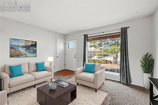 This outstanding ranch style home features four bedrooms, two renovated bathrooms, and an attached garage all nestled in a wonderful east Colorado Springs neighborhood. Spacious and inviting living area with access to the rear patio and expansive back yard. The kitchen comes equipped with stainless steel appliances, white cabinets, hardwood flooring, and modern lighting fixtures. Each bathroom boasts contemporary tiles and updated fittings, adding to the home’s stylish appeal. Notable upgrades include vinyl windows, air conditioning, new exterior doors, closet doors, and refreshed lighting fixtures. The lower level provides a generous family room plus an extra bedroom, perfect for guests, a home office, craft space, or a gym. Additional parking is available alongside the house for your vehicles, recreational toys, or RV. Conveniently located near Academy Blvd and the Powers corridor, this home offers tranquil living within easy reach of schools, shops, restaurants, and much more.