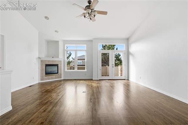 Beautifully appointed & accessible patio home offers effortless main-level living in The Fairways. Newly refinished hardwood floors, fresh interior paint, and vaulted ceilings enhance the light-filled living spaces, creating an inviting sense of openness throughout. The updated kitchen features granite countertops, a new range, newer dishwasher and microwave, along with a dedicated pantry for added storage. The kitchen flows seamlessly into the great room, where French doors open to a private deck with desirable southern exposure — ideal for indoor/outdoor living while overlooking community green space. The primary suite serves as a peaceful retreat with a five-piece bath including a jetted tub, walk-in closet, and custom built-in wardrobe. A spacious secondary bedroom at the front of the home is adjacent to a well-appointed three-quarter bath with granite countertops and a walk-in shower featuring grab bars and bench seating. The laundry is conveniently located off the main hallway. The fully finished basement with egress windows and garden level views expands the living area with durable LVP flooring, a third bedroom, a full bath and secondary washer/dryer hook-up — perfect for guests or additional flexibility. Additional improvements include a new A/C unit in '25, newer windows installed in '18, new Ring doorbell and closet lighting. Designed for low-maintenance living without compromising style, this home pairs timeless finishes with a functional layout. The Fairways offers harmonious living with convenient access to dining, shopping, and recreation throughout Colorado Springs.