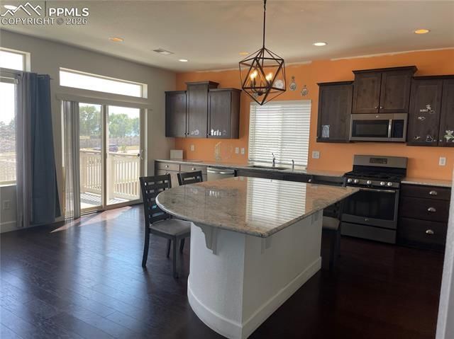 Welcome to a beautifully maintained home on a corner lot in a quiet cul-de-sac in the highly sought-after Banning Lewis Ranch community! Enjoy stunning Pikes Peak views and enhanced privacy with no rear neighbors. Built in 2016, this spacious 3,296 sq. ft. home- with AC. Offers 3 bedrooms, 3 baths, and a 3-car garage. The open-concept main level features a gourmet kitchen with granite countertops, stainless steel appliances, and a large center island that flows seamlessly into the dining and living areas— to walk out to Patio. Upstairs, you'll find a generous loft, laundry room, and a luxurious primary suite with a walk-in closet and 5-piece bath. Wood floor home! The full unfinished basement provides incredible potential for a 4th bedroom, an additional bathroom, and a spacious family or recreation room. Banning Lewis Ranch offers exceptional amenities including award-winning K–12 Banning Lewis Academy charter schools, a clubhouse, fitness center, dog park, Olympic-size pool, tennis and pickleball courts, as well as extensive trails, parks, and open space. Conveniently located near all military bases, shopping, dining, and entertainment. In the winter, enjoy snow play in the neighborhood; in the summer, you might even catch a double rainbow in the sky. This move-in ready home is a must-see in one of Colorado Springs’ most popular master-planned communities!