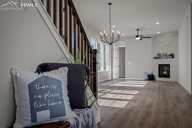 Classic comforts and modern luxuries come together to make this new construction home in Wolf Ranch a great place to build your future! Dedication to craftsmanship informs every inch of this new home in Colorado Springs, CO. The gourmet kitchen, a masterpiece of design and functionality, is sure to inspire culinary passions. The open-concept living area, bathed in natural light, creates a welcoming atmosphere. A dedicated study offers a quiet escape. Four spacious bedrooms, thoughfully designed with generous closet space, provide personalized retreats. A Super Shower in the Owner's Retreat elevates everyday living. Nestled within a tranquil setting, this exceptional residence also features an oversized garage, providing ample storage and convenience.